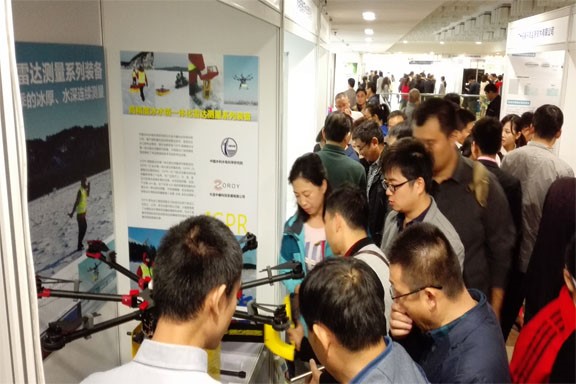 新技術成果裝備展示會場內,大連中睿科技發展有限公和中國水利水電科學研究院的聯合展位上,展出的冰水一體化雷達、無人機飛航測冰雷達和便攜式測冰雷達儀吸引了眾多與會代表參觀了解,詢問設備性能和技術指標,大連中睿科技發展有限公司副總經理、陳潔博士熱情的為與會專家和代表做了詳細介紹和說明。